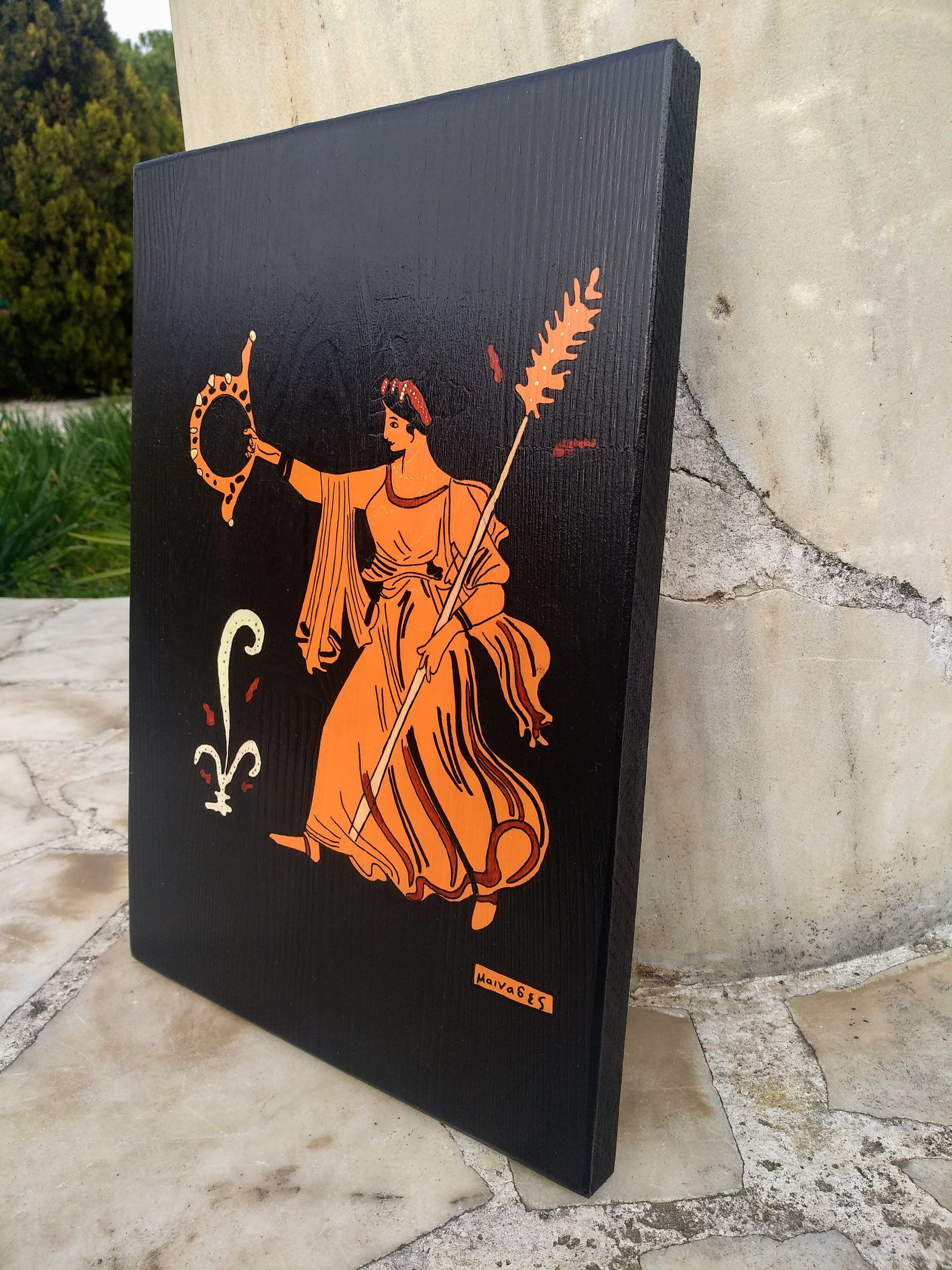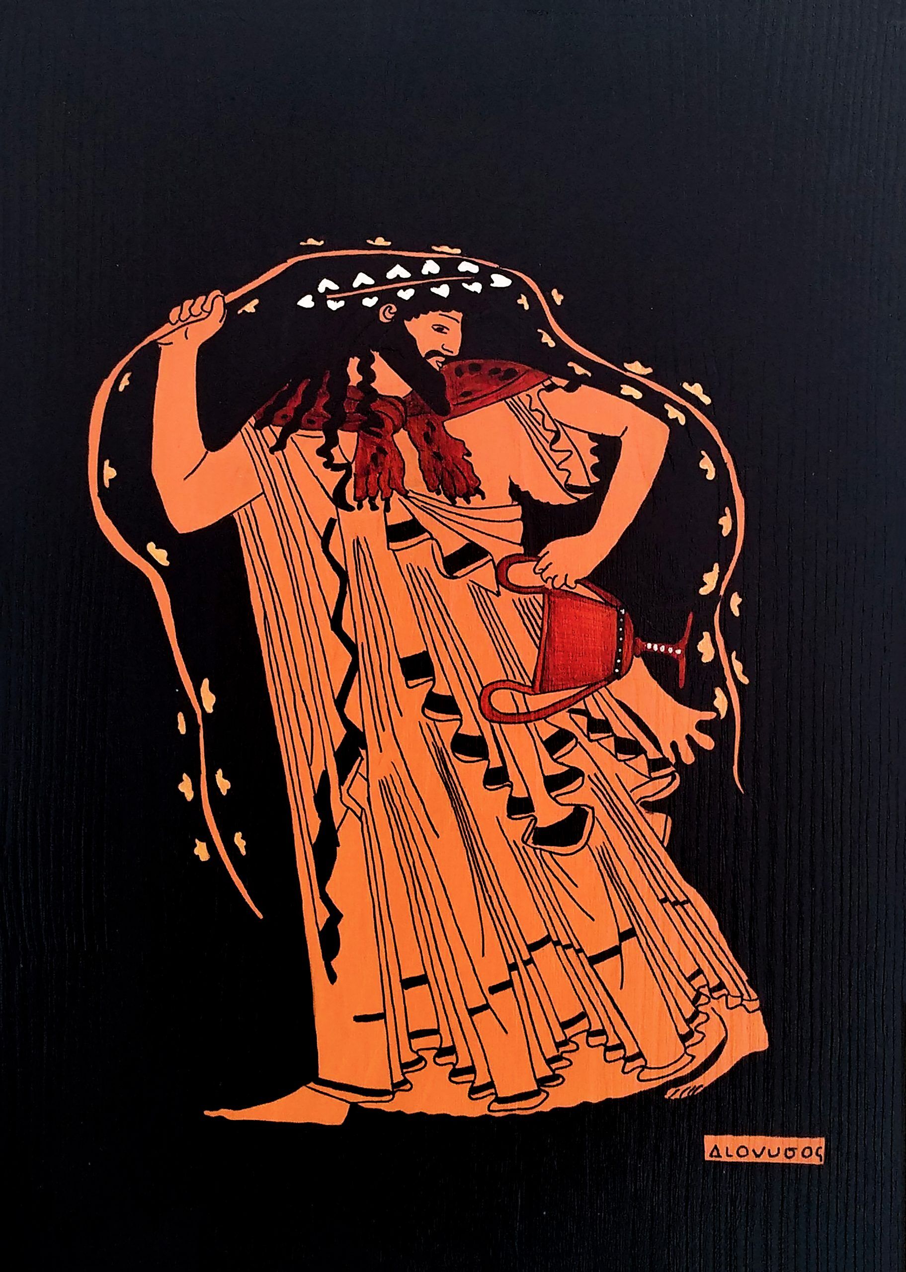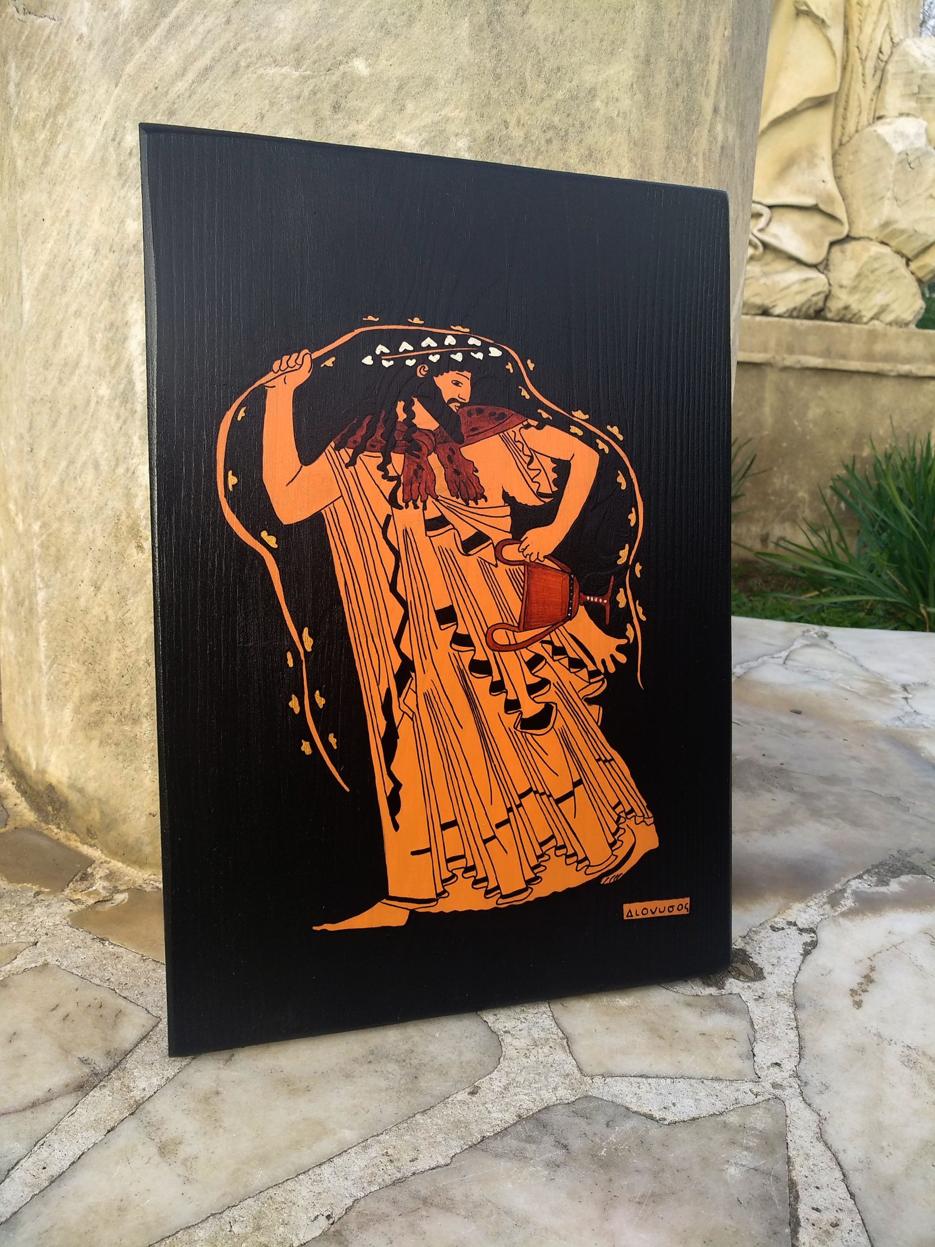 Çeşitli Antik dönem kültürlerindeki mitolojik karakterlerin ve bunların betimlendikleri sahnelerin tamamen el çizimi ile masif ahşap üzerine aktarılmasıyla oluşturulan Antik dönem koleksiyonumuz’da, M.Ö 6. yy da başlayan ve Helen kültüründeki çömlekçilik sanatında kullanılan ” Red Figure” ve “Black Figure” boyama tekniği uygulanmıştır.
