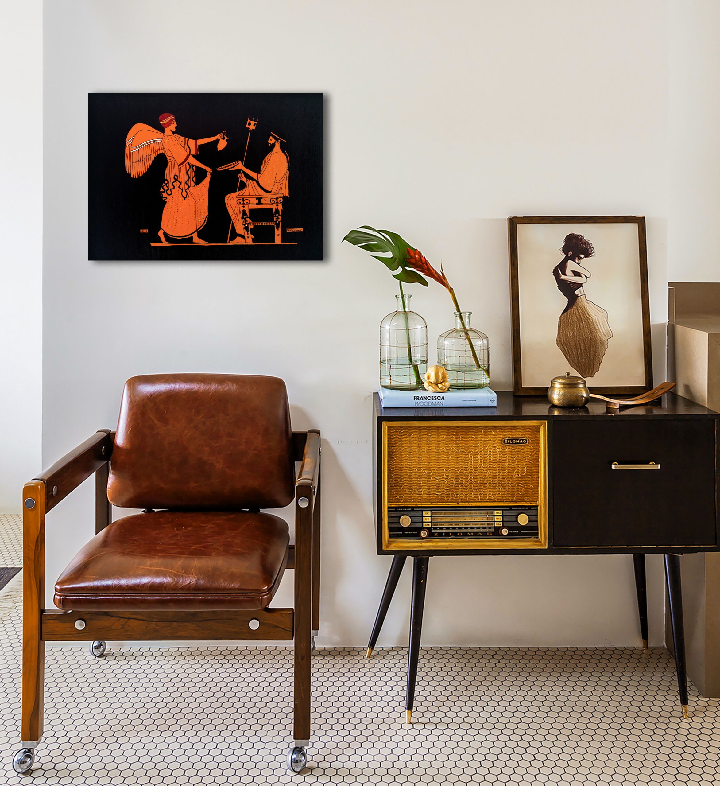 Çeşitli Antik dönem kültürlerindeki mitolojik karakterlerin ve bunların betimlendikleri sahnelerin tamamen el çizimi ile masif ahşap üzerine aktarılmasıyla oluşturulan Antik dönem koleksiyonumuz’da, M.Ö 6. yy da başlayan ve Helen kültüründeki çömlekçilik sanatında kullanılan ” Red Figure” ve “Black Figure” boyama tekniği uygulanmıştır.